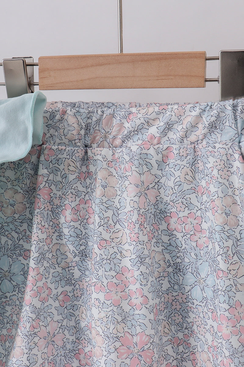 Blue floral bunny applique ruffle skorts set