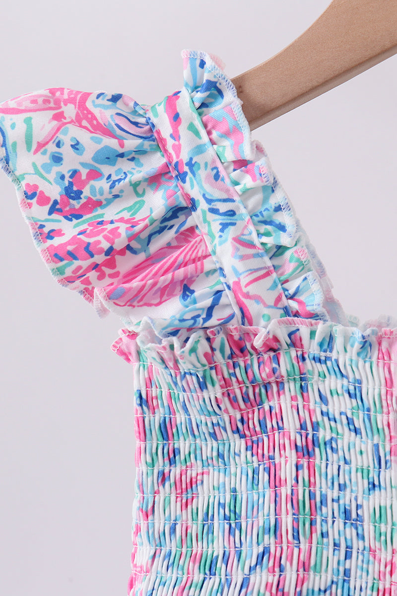 Blue marine smocked ruffle tiered mom&me dress